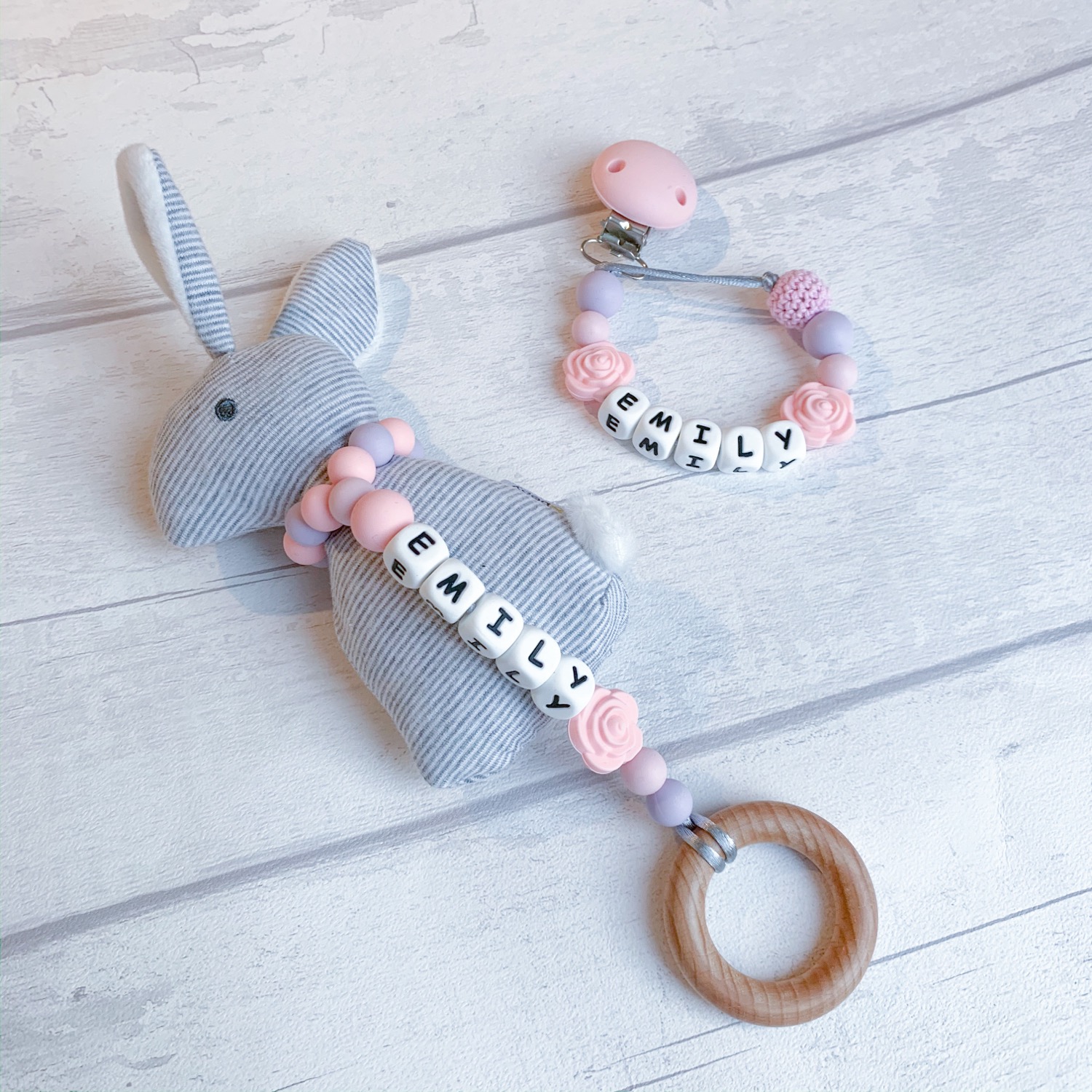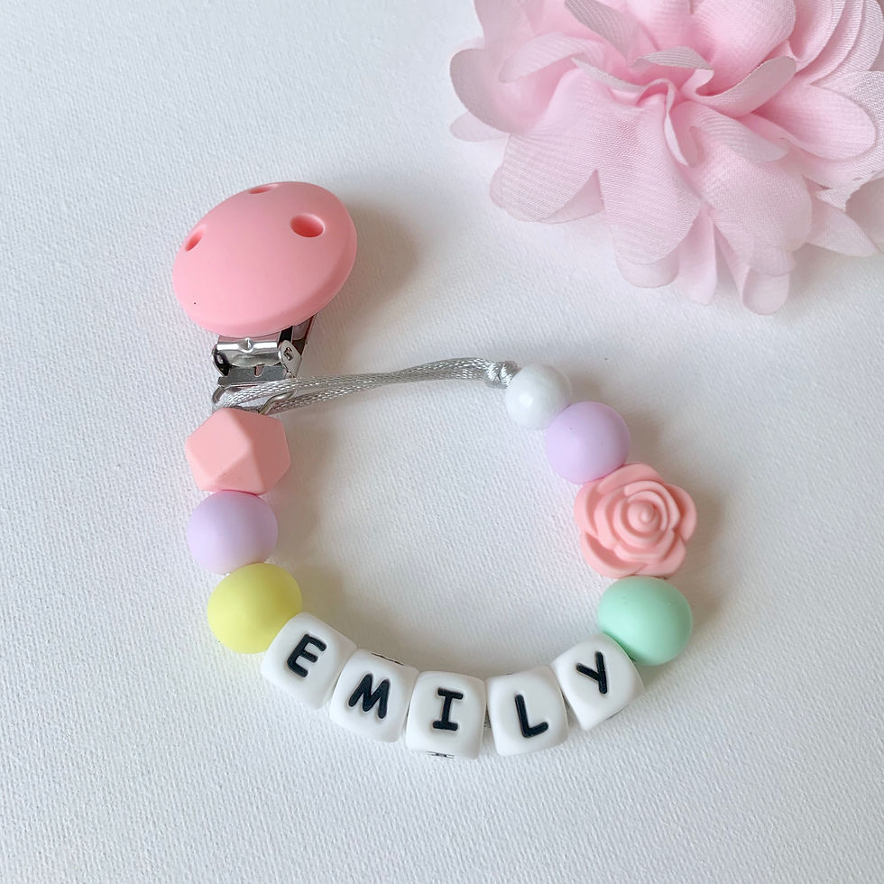 Personalised Easter Dummy Clips. Mini Eggs Soother Chains. All products can be Personalised in any way, so if you would like any Product designed by You, please get in touch and I will do my best to meet your wishes. see some tutorials on how to here