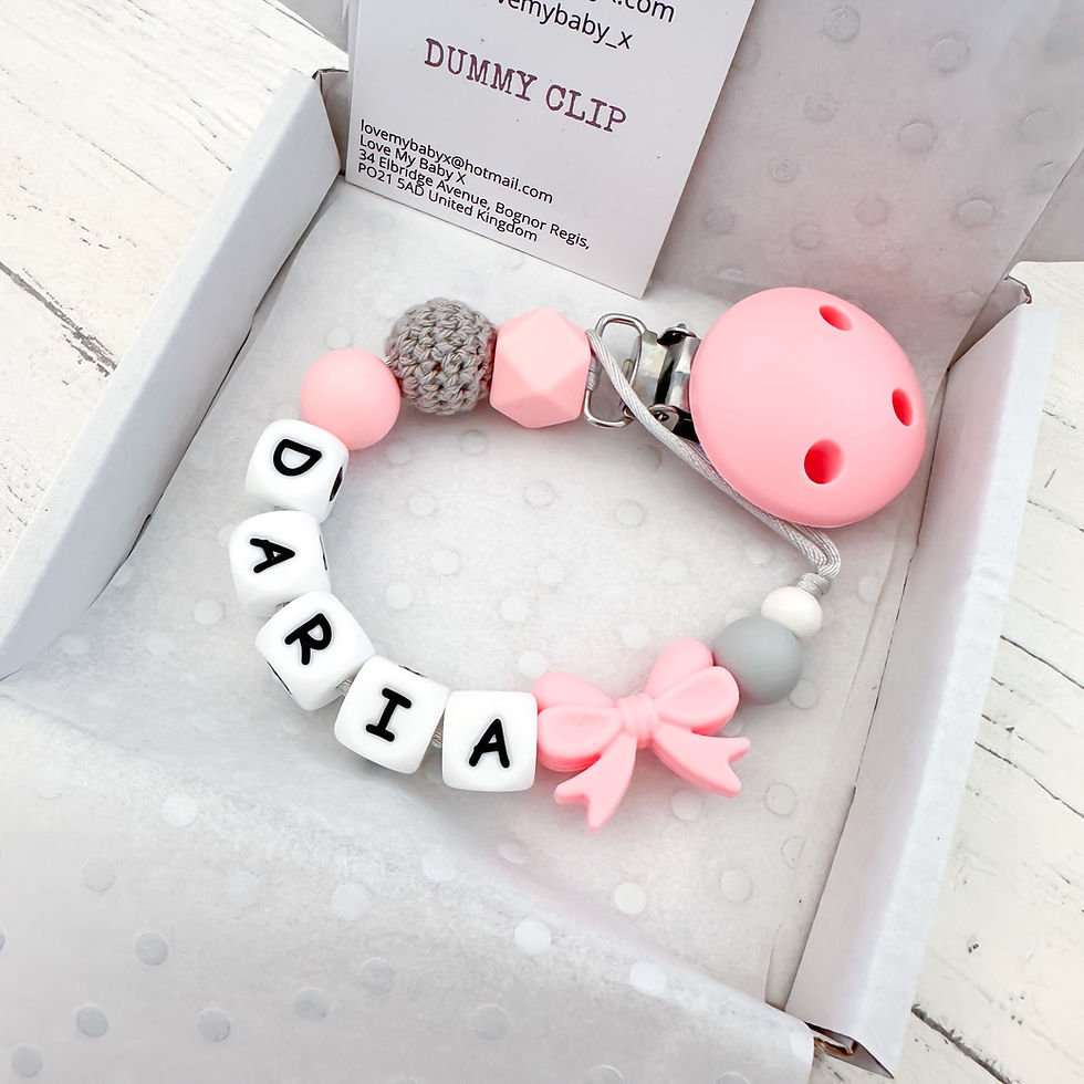 Personalised Dummy Clips, Soother Chains, Dummy Holders. All products can be Personalised in any way, so if you would like any Product designed by You, please get in touch and I will do my best to meet your wishes.y.