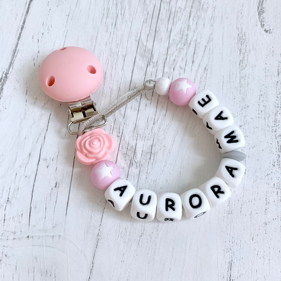 Personalised Dummy Clips, Soother Chains, Dummy Holders. All products can be Personalised in any way, so if you would like any Product designed by You, please get in touch and I will do my best to meet your wishes.y.