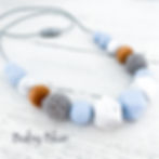 Some Teething necklaces can be Personalised . Nursing necklace with different shapes and textures